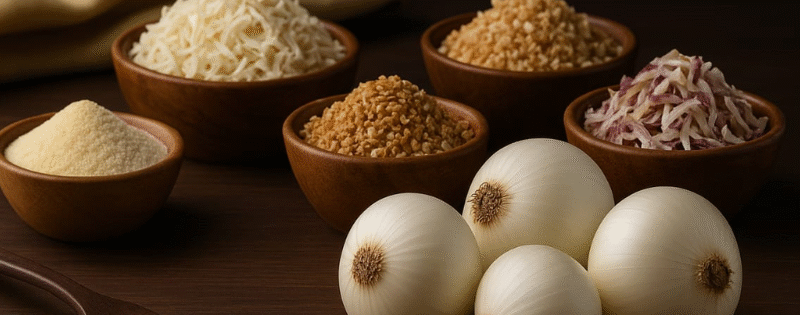 Dehydrated garlic is made by removing moisture from fresh garlic cloves using controlled heat, usually between 130-150°F. This method allows garlic to be stored for a longer time, from weeks to years, while intensifying its natural flavors. There are several types of dehydrated garlic available in the market, each suitable for different cooking purposes: